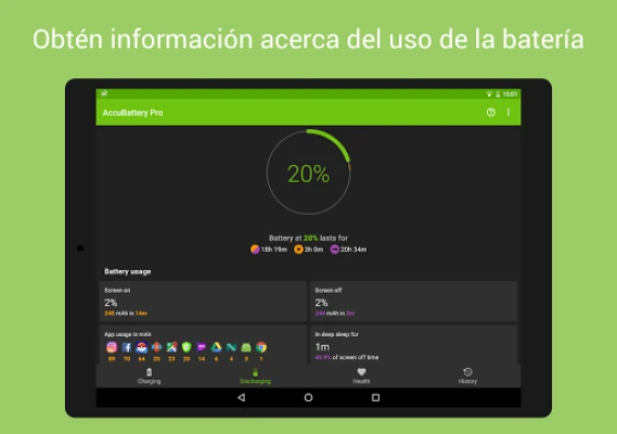 AccuBattery ofrece una visión científica del uso de tu batería. Mide su capacidad real en mAh y proporciona información detallada para optimizar la salud y duración de tu batería. Descubre cómo mejorar su rendimiento con datos precisos.