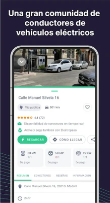 Más allá de la funcionalidad, Electromaps es una comunidad vibrante de más de 200.000 usuarios unidos por la movilidad eléctrica. Benefíciate de la experiencia colectiva consultando valoraciones, comentarios y fotografías compartidas por otros conductores, lo que te permite elegir el mejor punto de recarga o encontrar indicaciones precisas. Tu contribución también es valiosa: comparte tus impresiones, añade fotos o incluso registra nuevos puntos para enriquecer la base de datos de Electromaps. No importa si conduces un Tesla Model 3, un Volkswagen ID.4, un KIA EV6 o cualquier otro modelo, y no importa el operador (desde Iberdrola hasta Tesla Superchargers), con Electromaps siempre estarás conectado a la energía que necesitas.