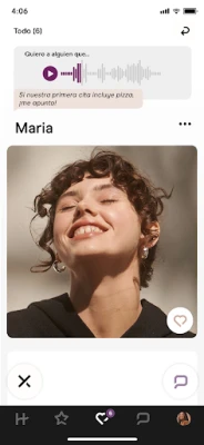En Hinge, nos diferenciamos por la profundidad de nuestras interacciones. Dejamos atrás el deslizamiento superficial, priorizando tu personalidad y tus aspiraciones. A través de respuestas a preguntas ingeniosas y la posibilidad de añadir audios de presentación, te ofrecemos herramientas para mostrarte tal como eres, facilitando conversaciones que realmente importan. Nuestro algoritmo inteligente aprende de tus preferencias y de tus citas para refinar las recomendaciones, asegurando que te conectemos con perfiles compatibles que compartan tus intereses y valores, fomentando así encuentros de calidad.