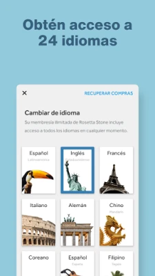 Rompe las barreras lingüísticas con una sola suscripción. Por primera vez, Rosetta Stone te ofrece acceso ilimitado a todos nuestros idiomas. Pasa sin esfuerzo del inglés al japonés, del francés al árabe, o explora el coreano, alemán, italiano y muchos más, con la libertad de cambiar cuantas veces desees. Además, personaliza tu trayectoria de aprendizaje: cuéntanos tus objetivos y diseñaremos un plan a medida, repleto de frases útiles y recordatorios inteligentes, garantizando que cada paso te acerque a tu meta, ya sea para viajar, trabajar o simplemente por curiosidad.