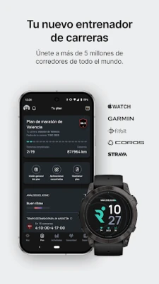 Nuestros programas de entrenamiento son una fusión de ciencia y personalización, adaptándose dinámicamente a tu nivel, tus ambiciones y tu calendario. Visualiza la línea de meta de tu próximo maratón, y deja que Runna te trace el camino con rutinas optimizadas para tu progreso. Mantén un control absoluto de tus sesiones con el seguimiento en tiempo real en dispositivos como Apple Watch, Garmin y COROS, integrándose además con tus plataformas favoritas. Además, Runna adopta un enfoque holístico que va más allá de la carrera, ofreciendo orientación sobre técnica, nutrición y prevención de lesiones, y complementando tu preparación con rutinas de fuerza y acondicionamiento físico.